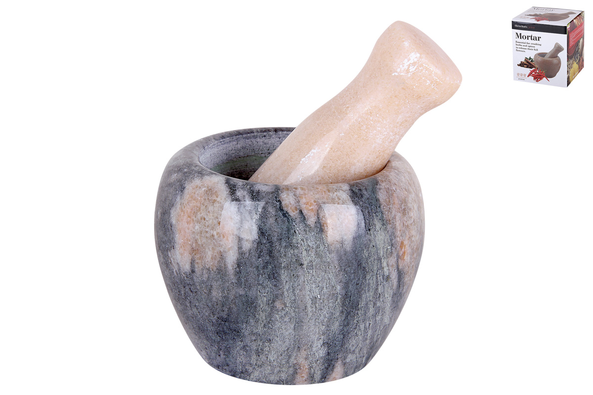 Мраморная ступка с пестиком является одним из древнейших изобретений человека, известное за 8 000 лет до нашей эры. Используется для помола зерна и других продуктов. Она иредназначается для того, чтобы измельчать и растирать специи, зерно, орехи и другие пищевые продукты.