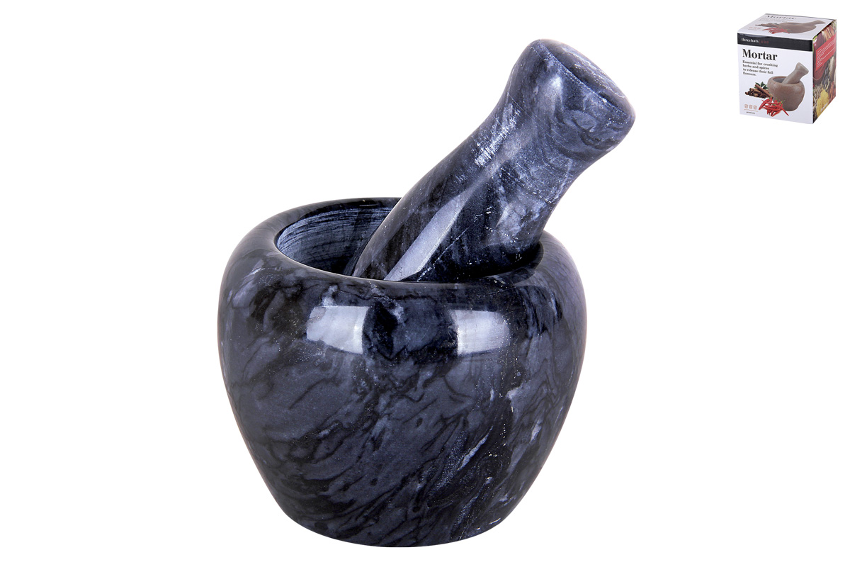 Мраморная ступка с пестиком является одним из древнейших изобретений человека, известное за 8 000 лет до нашей эры. Используется для помола зерна и других продуктов. Она иредназначается для того, чтобы измельчать и растирать специи, зерно, орехи и другие пищевые продукты.