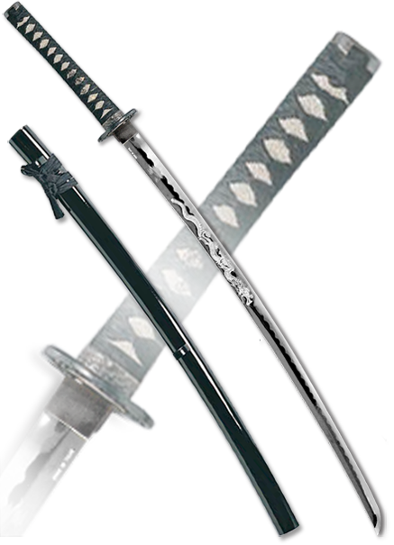 Меч самурайский. Ножны синие. Гарда "золотое солнце"