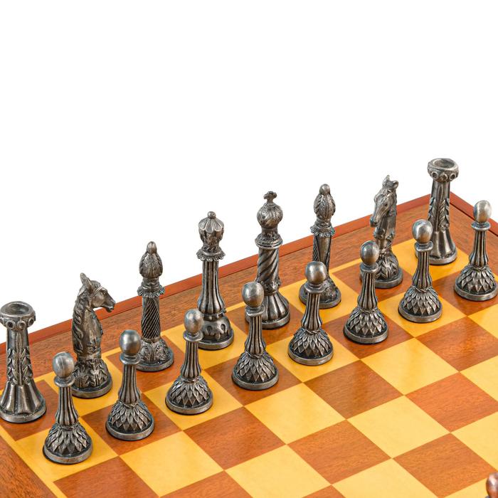 Сувенирные шахматы "Классика" выполнены из металла и представлены на оригинальной деревянной доске. Прекрасное качественное исполнение комплекта никого не оставит равнодушным.