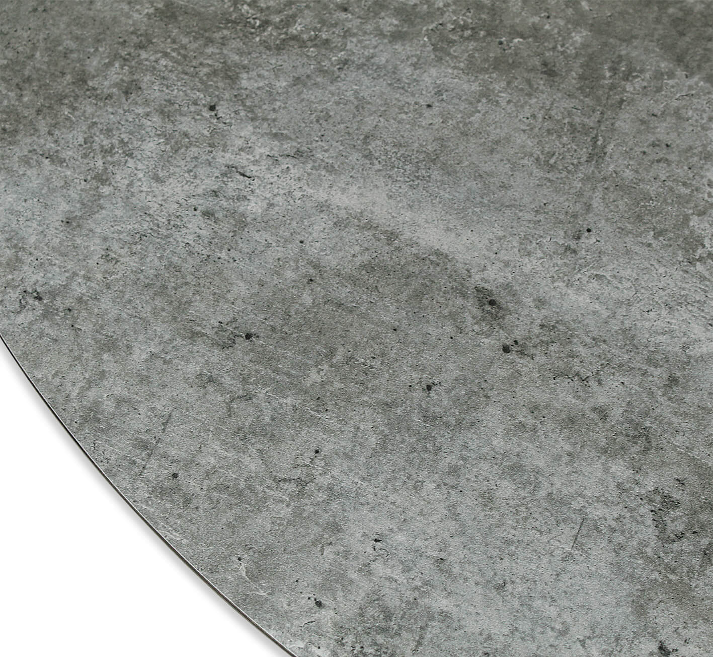 Столешница из HPL пластика смотрится изящно и невесомо, поскольку имеет толщину 12 мм. Рисунок текстуры на поверхности столешницы визуально неотличим от натурального камня.
